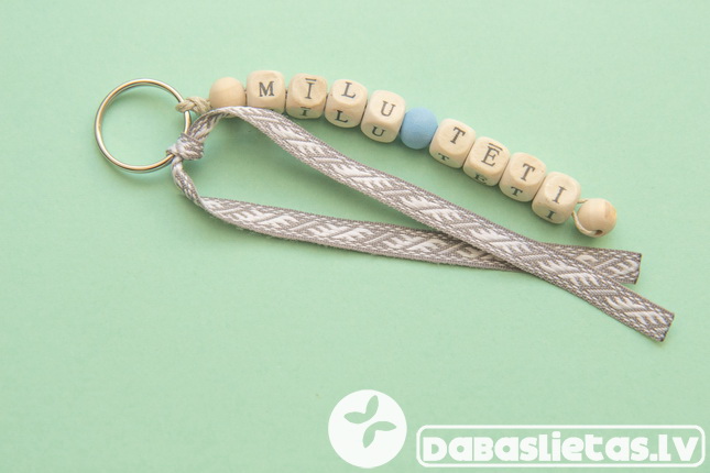 Atslēgu piekariņš ar koka pērlītēm. Simboliska dāvana -piekariņš vienmēr būs līdzi un atgādinās par mīļajiem, kas to ir dāvājuši.