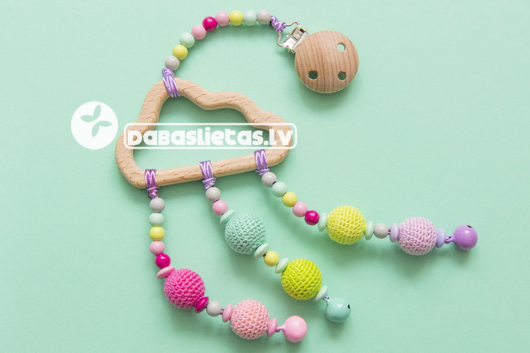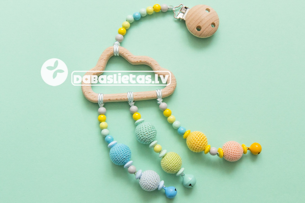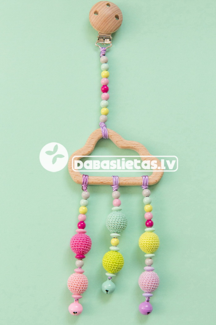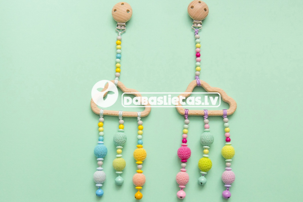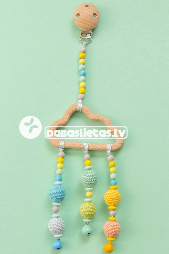 Ratu grabulis izgatavots no augstākās kvalitātes vācijā ražotiem materiāliem. Krāsotās koka pērlītes ir sertificētas, atbilst drošības standartiem, krāsots ar bērniem draudzīgu krāsu, nesatur toksīnus un ir mitrumizturīgs. Koka knaģis stingri turas un nebojā apģērbu, metāla detaļas nesatur niķeli. Kļavas koka pērlīte aptamborēta ar smalku kokvilnas diegu - roku darbs. Zvaniņi skan ļoti maigi. Dažādas formas un faktūras koka bumbiņas attīstīs sīko motoriku, kas nozīmē arī valodiņas attīstību.